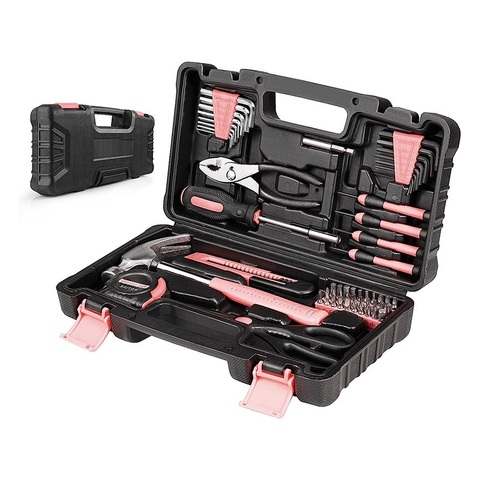 57 टुकड़ा पोर्टेबल महिलाओं घरेलू आसान पकड़ गुलाबी उपकरण किट हाथ हार्डवेयर उपकरण किट प्लास्टिक टूलबॉक्स भंडारण मामले के साथ सेट