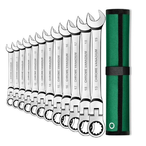 12 adet krom vanadyum çelik sabit kafa kombinasyonu cırcır anahtarı tork anahtarı çift ofset cırcır yüzük anahtar takımı